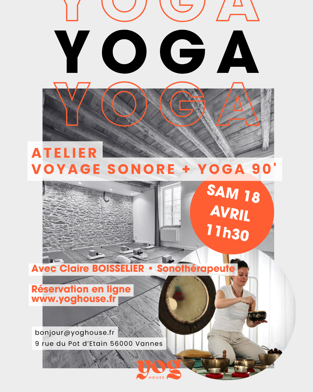 Prenez RDV pour votre prochain cours de yoga, la location d’un espace de travail, la douceur d’un massage, la participation à un atelier, l’achat d’une carte cadeaux, cela depuis chez vous sur le site www.yoghouse.fr. Effectuez votre réservation et votre paiement instantanément sur la plateforme sécurisée.