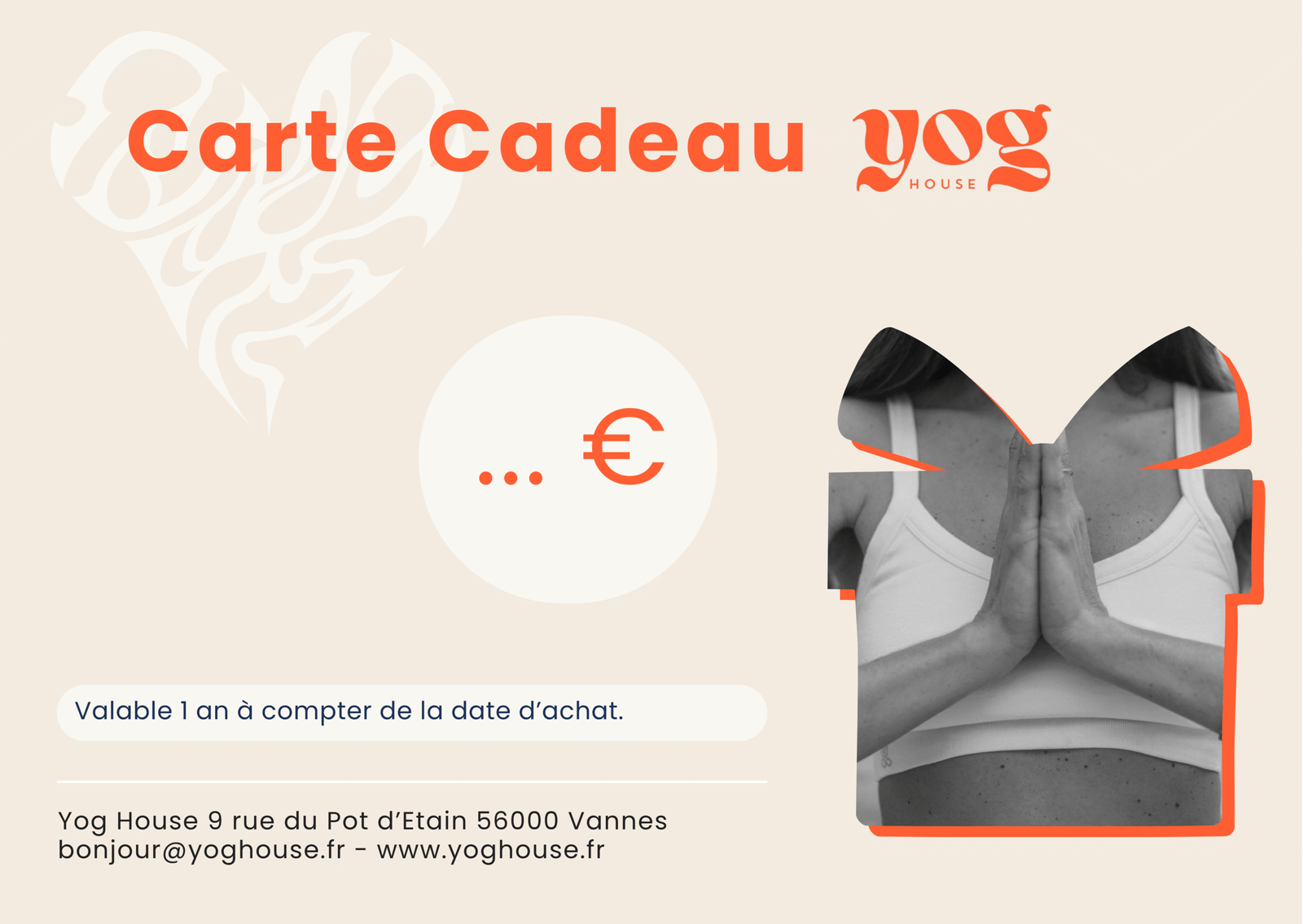 Les cartes cadeaux Yog House permettent de vivre un moment privilégié — à travers nos cours de yoga, nos séances de yoga du visage ou nos ateliers bien-être à Vannes.